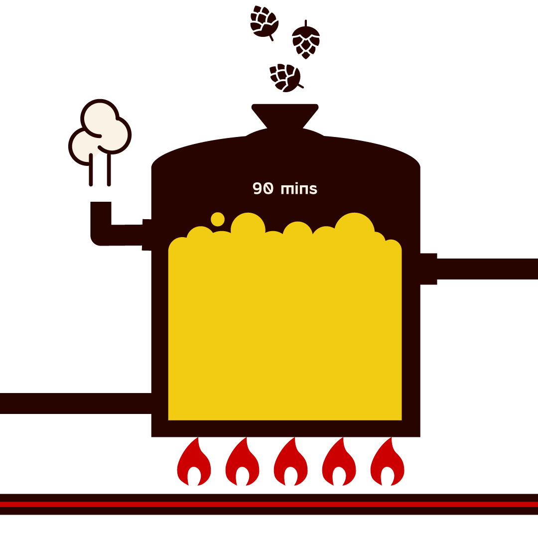 Here we boil the wort to sterilise it. We also add hops, a natural preservative that adds bitterness, flavour and aroma