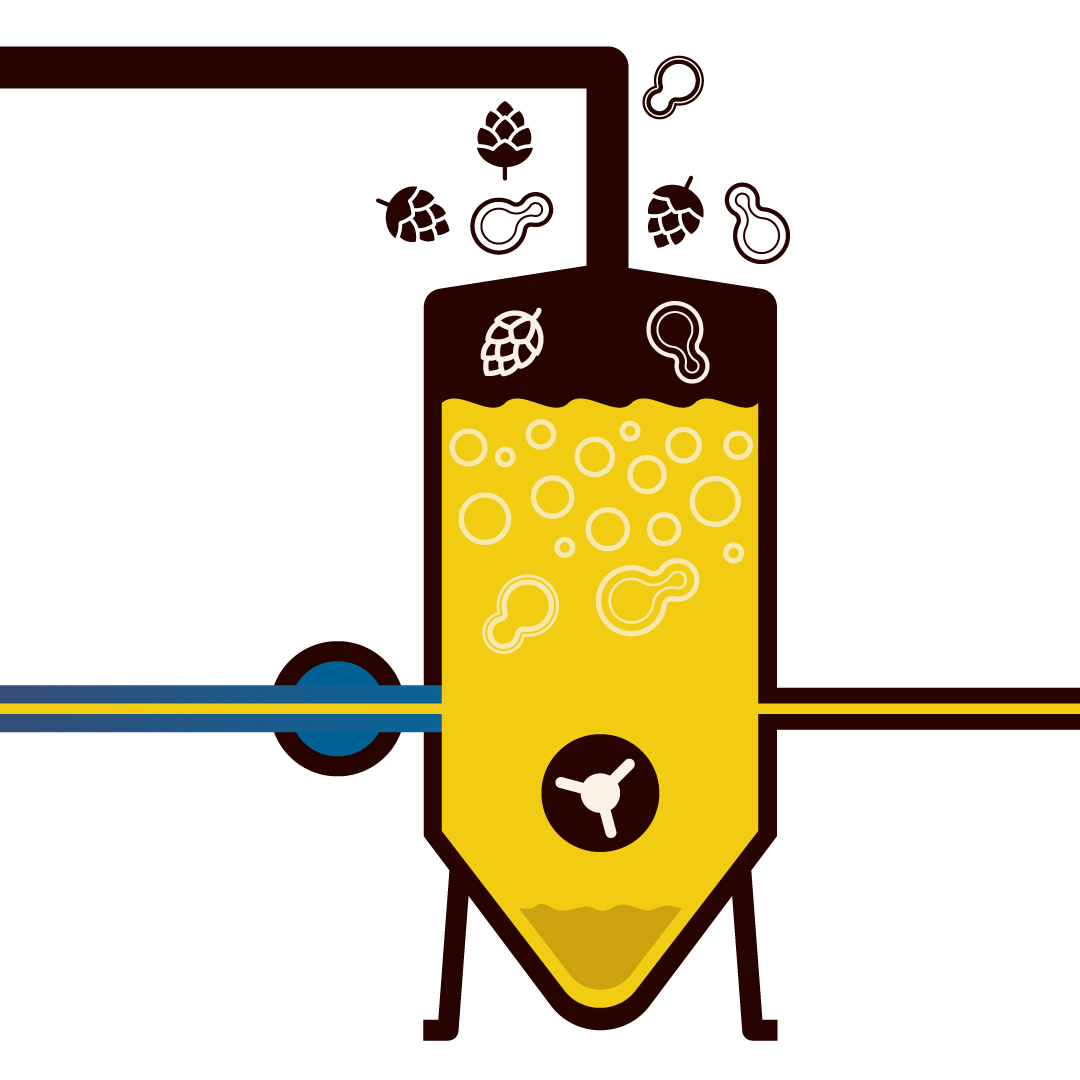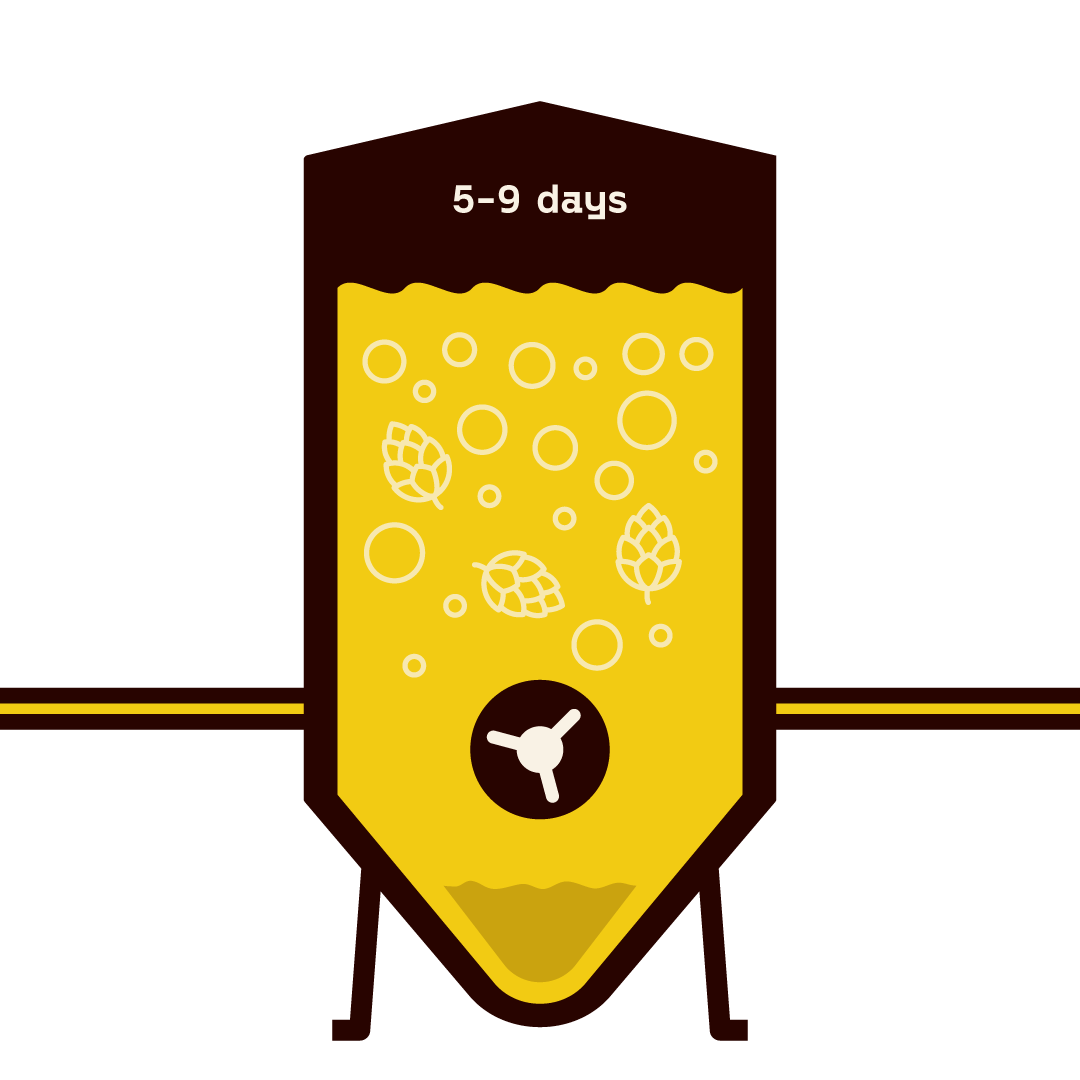 Here we add our magic yeast to eat all the tasty sugars and convert them to alcohol and bubbles (CO2). Occasionally we also add more hops for extra aroma kick ‘dry hopping’